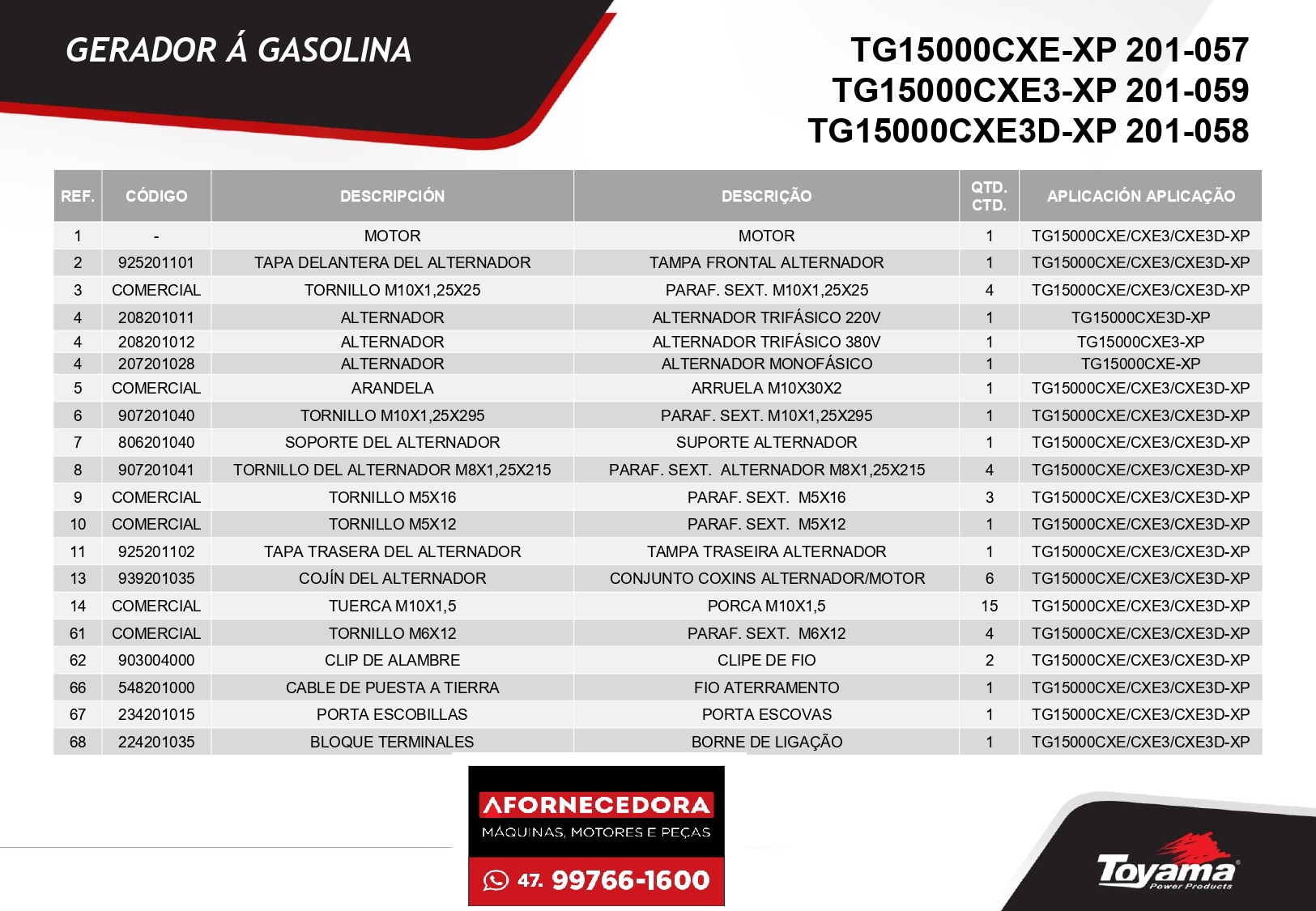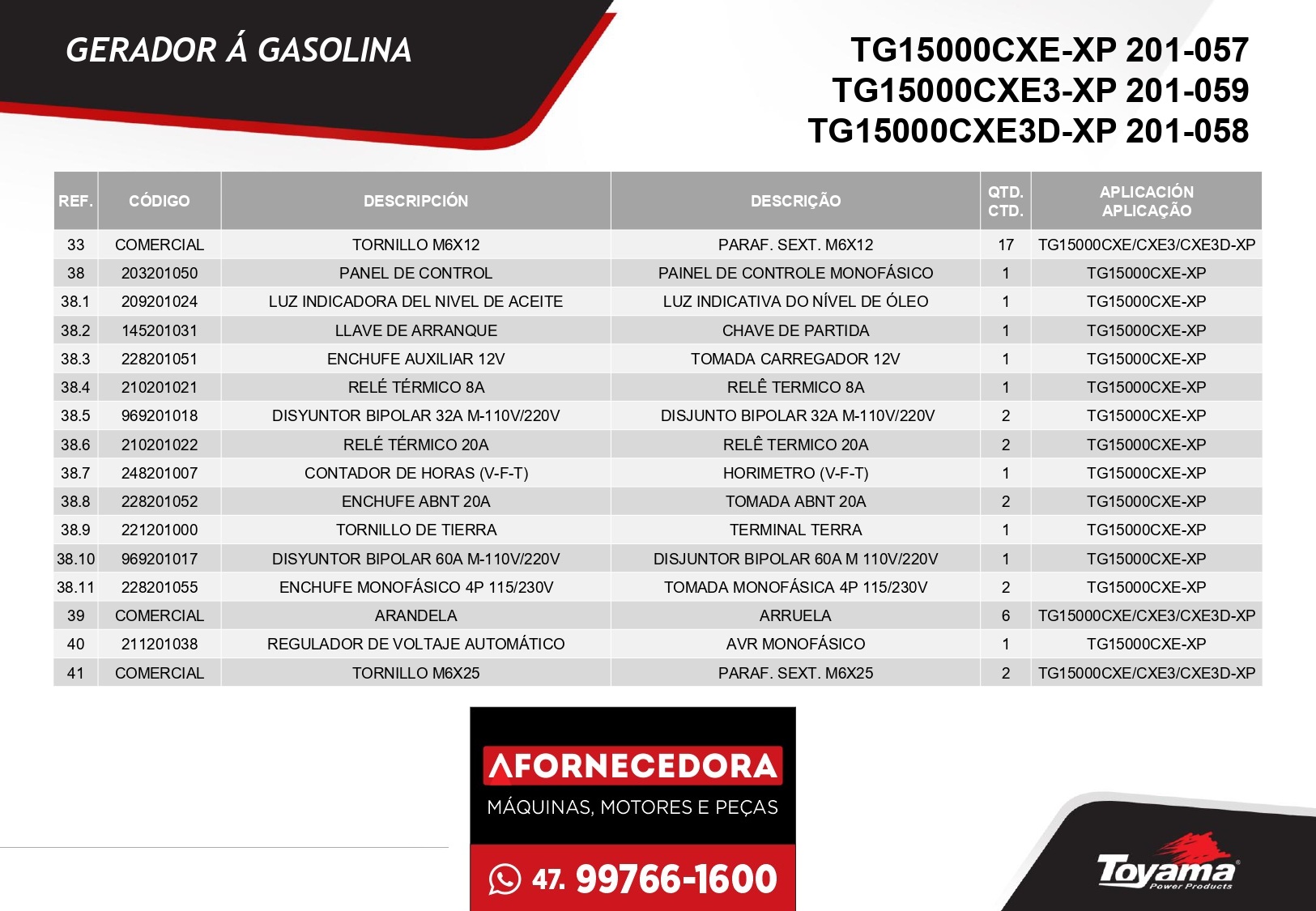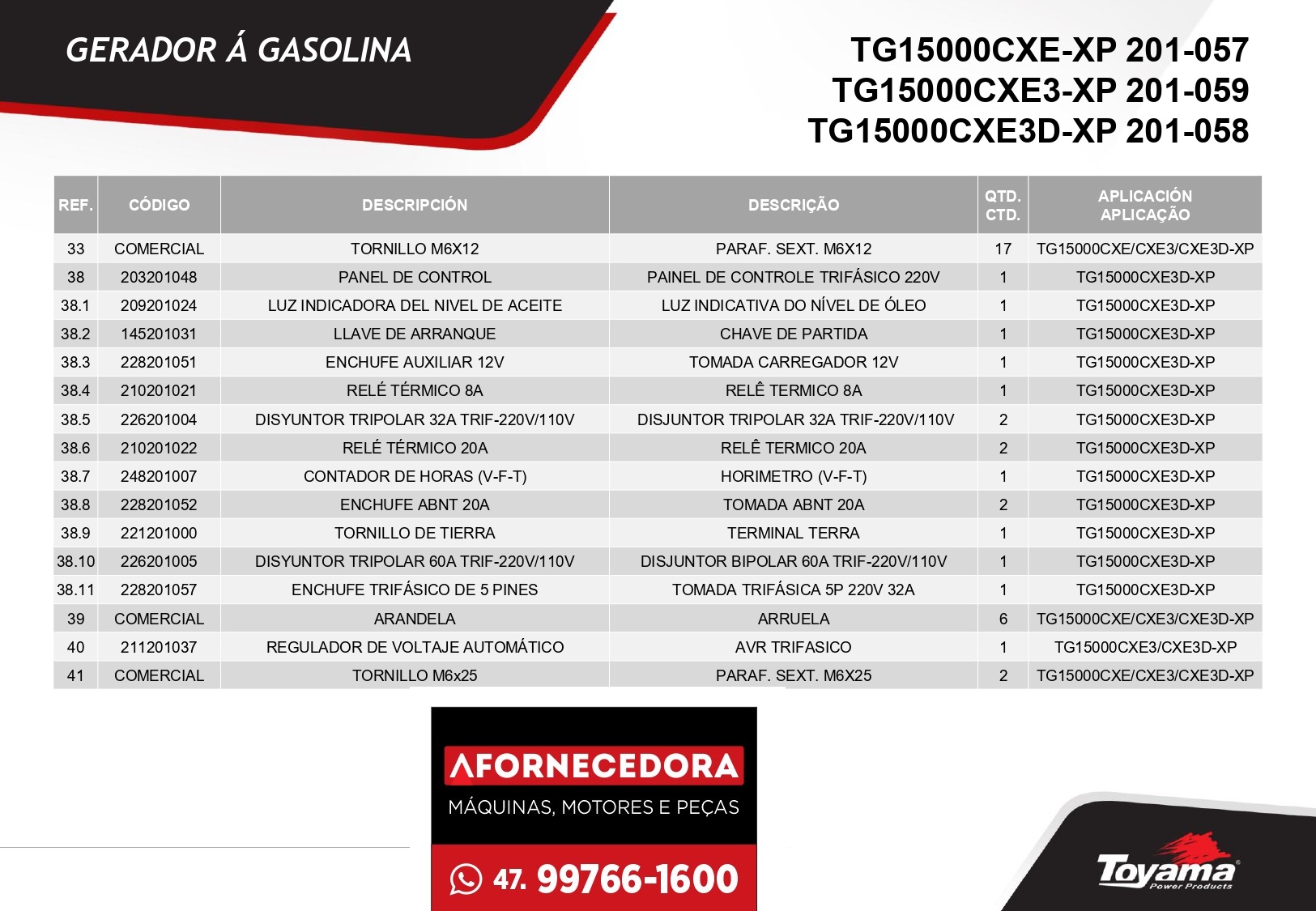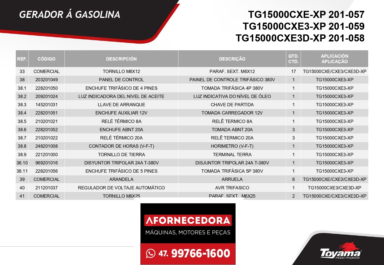 Peças para Gerador Toyama TG15000