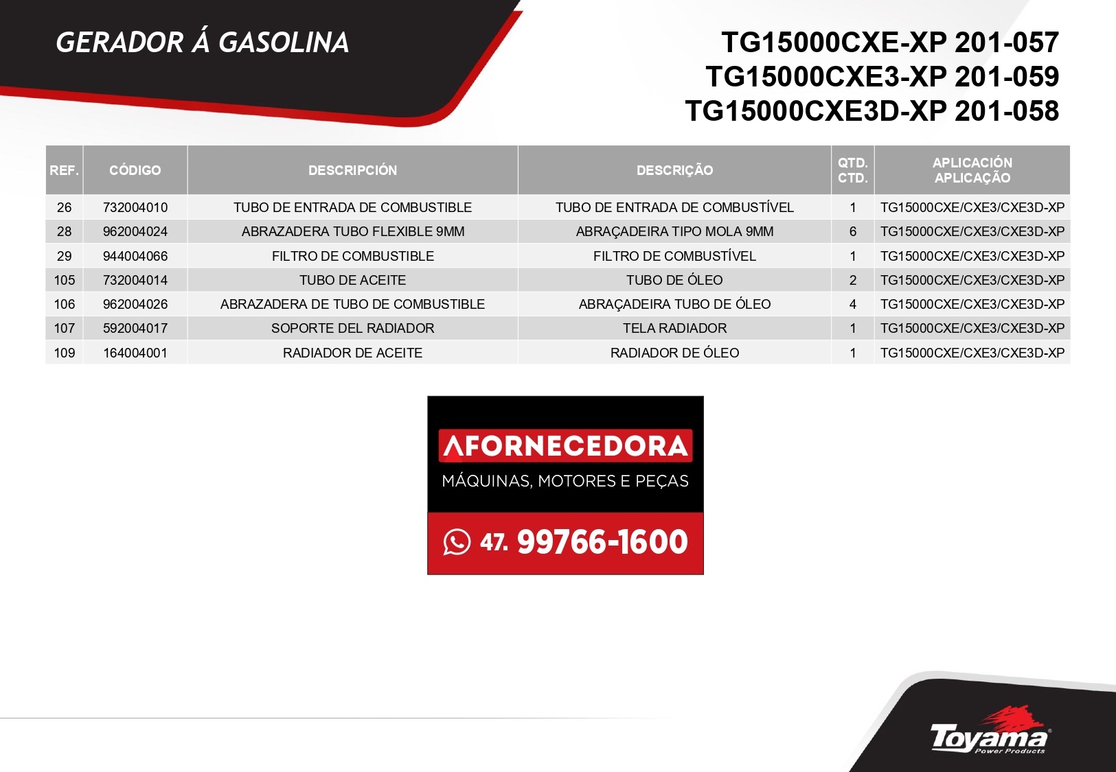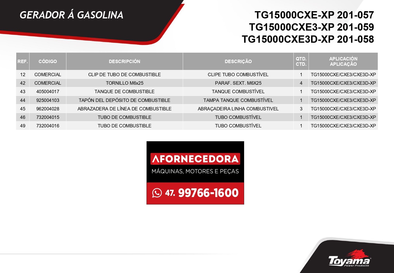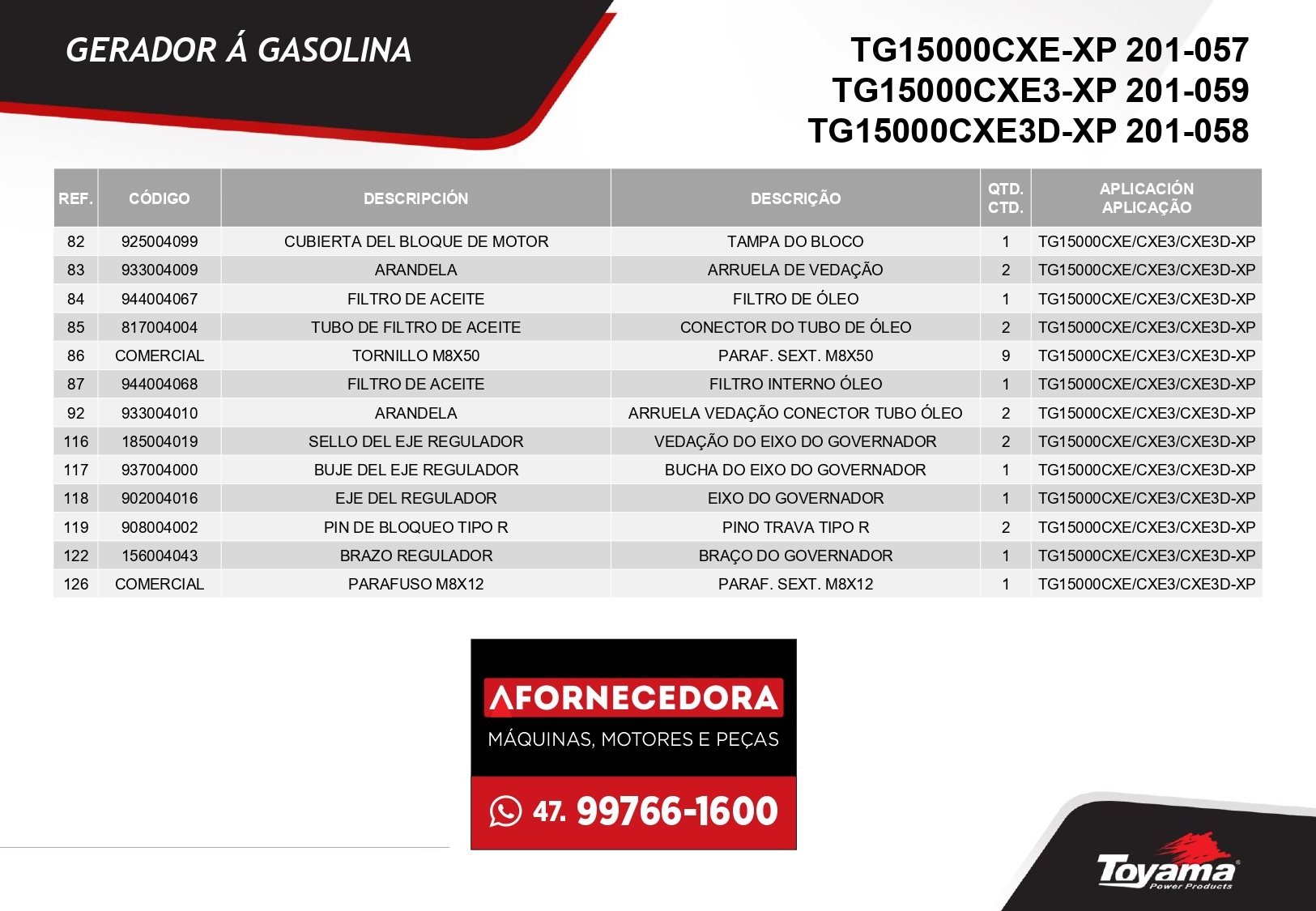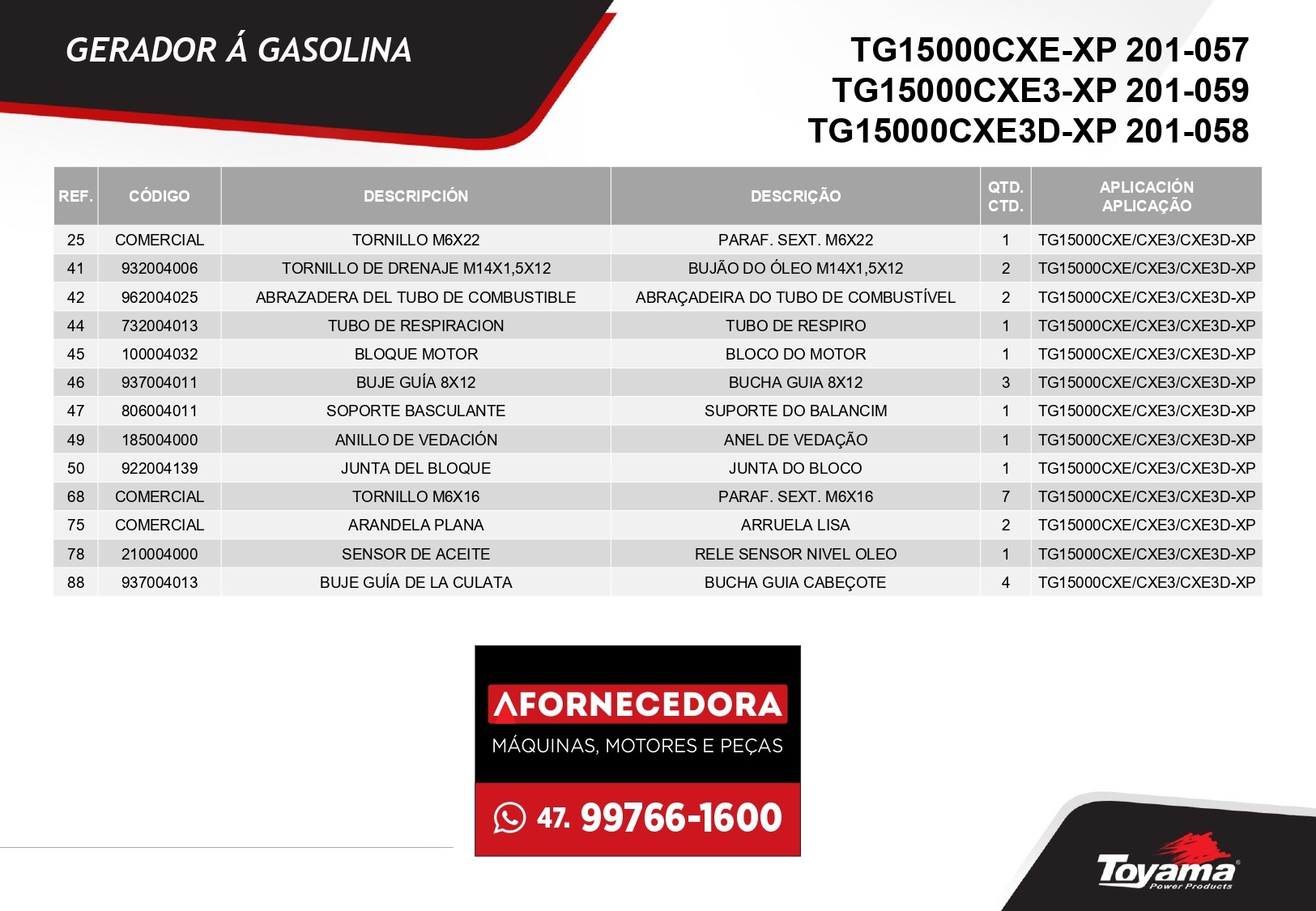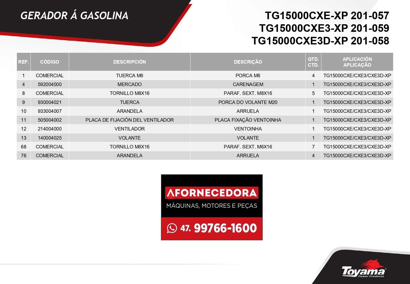Peças para Gerador Toyama TG15000