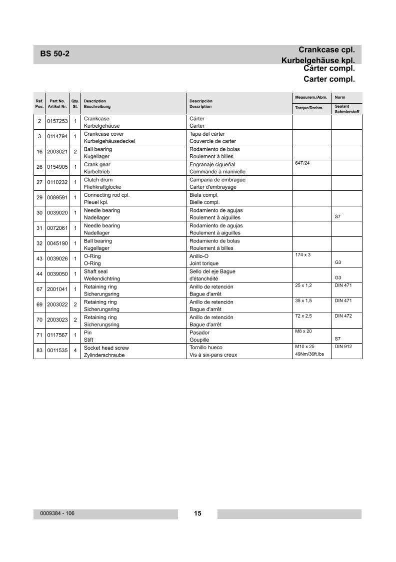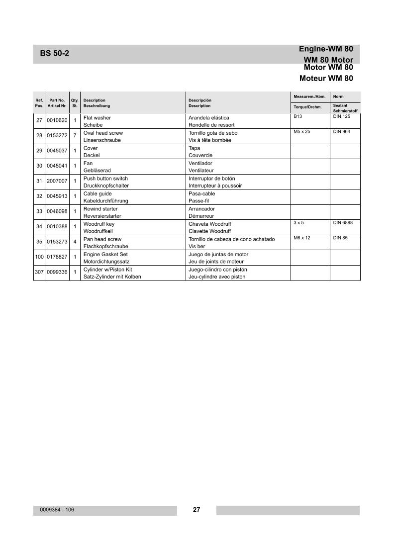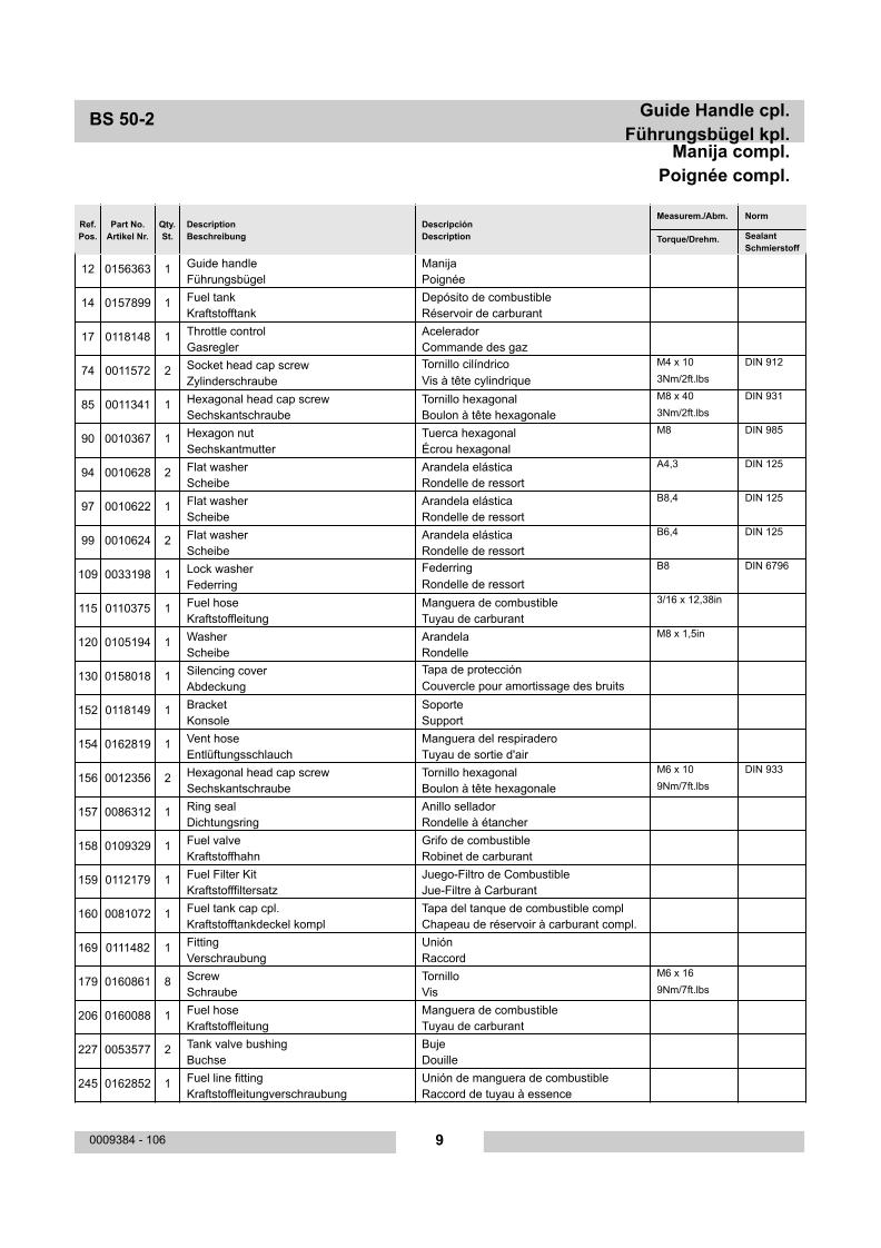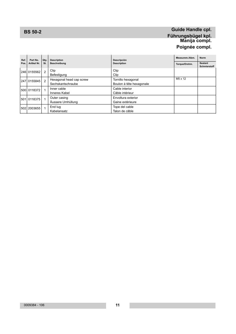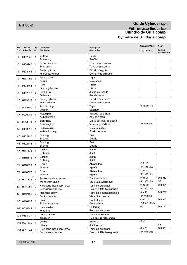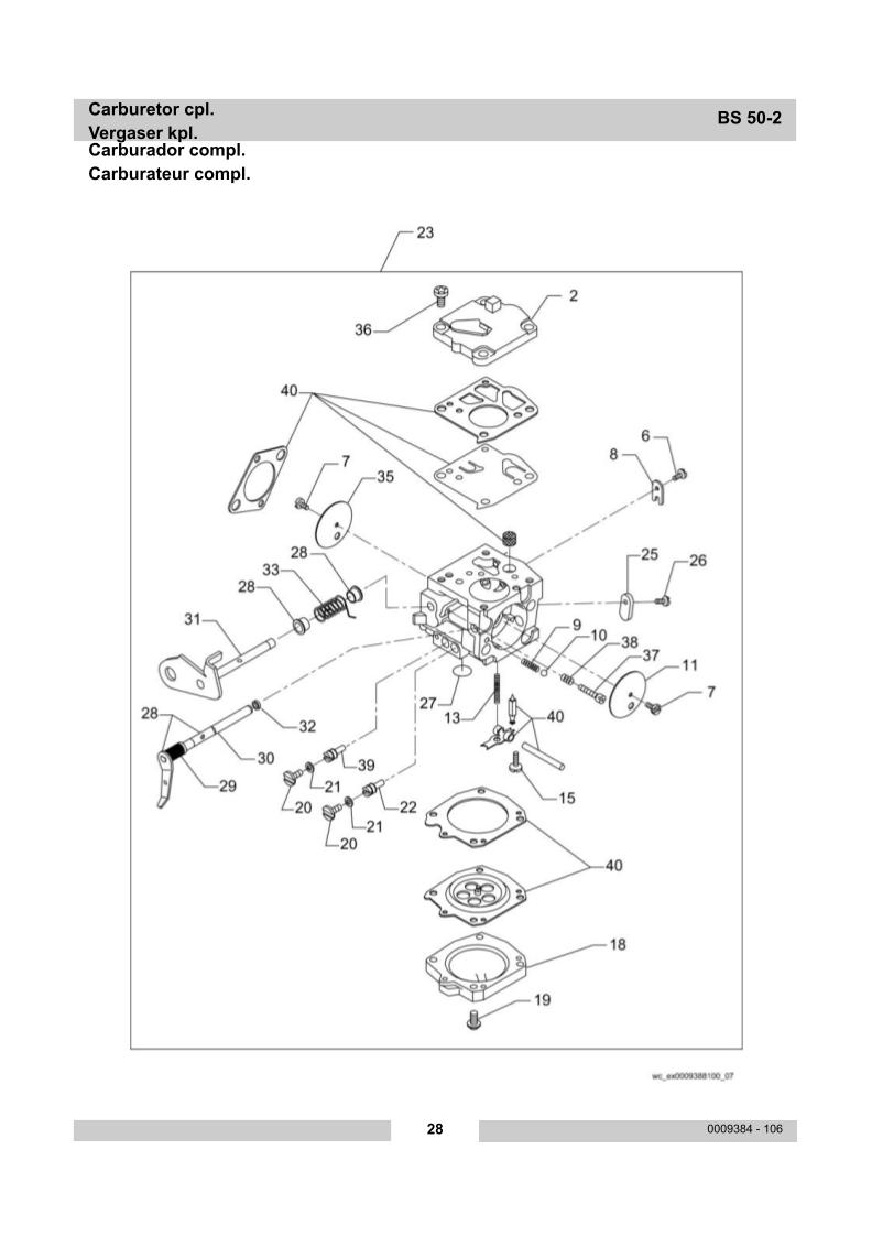 Vista explodida com todas as peças do compactador de solo BS50-2 do fabricante Wacker Neuson!