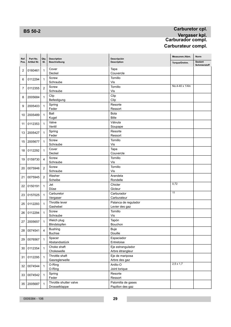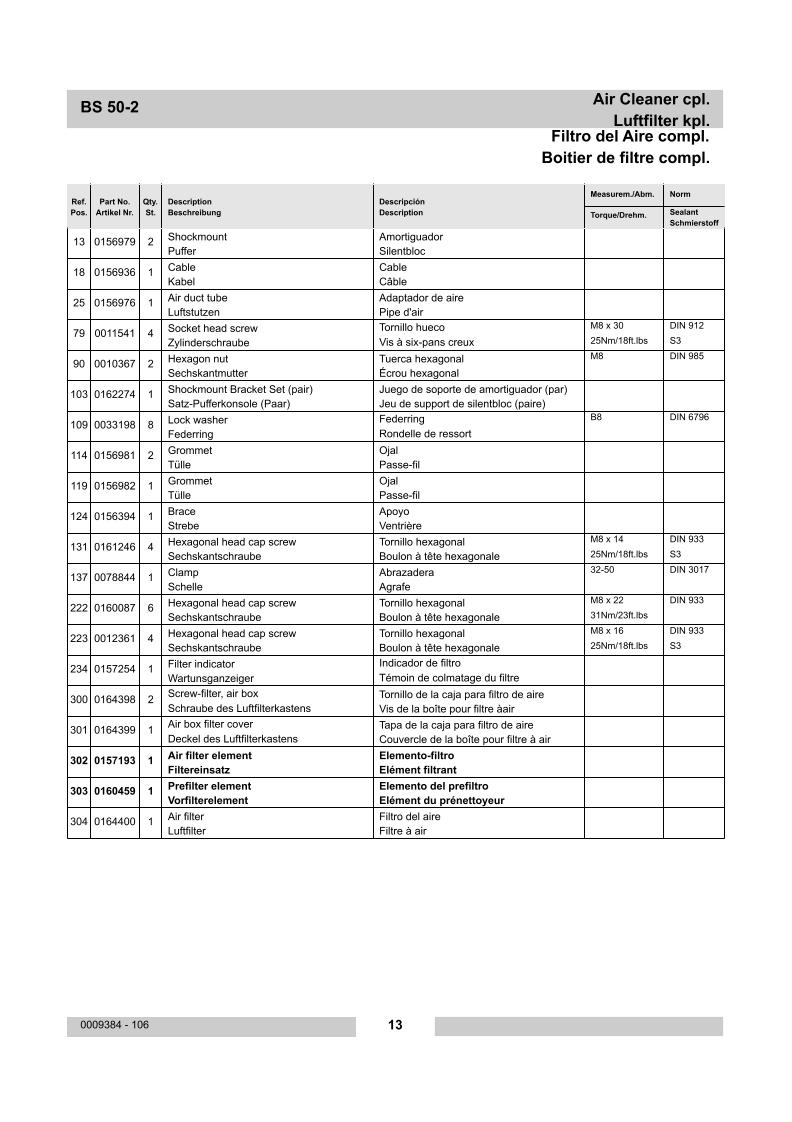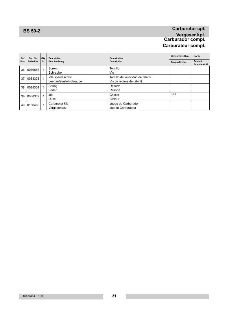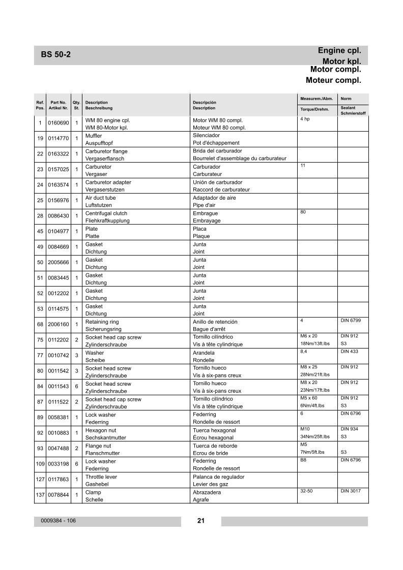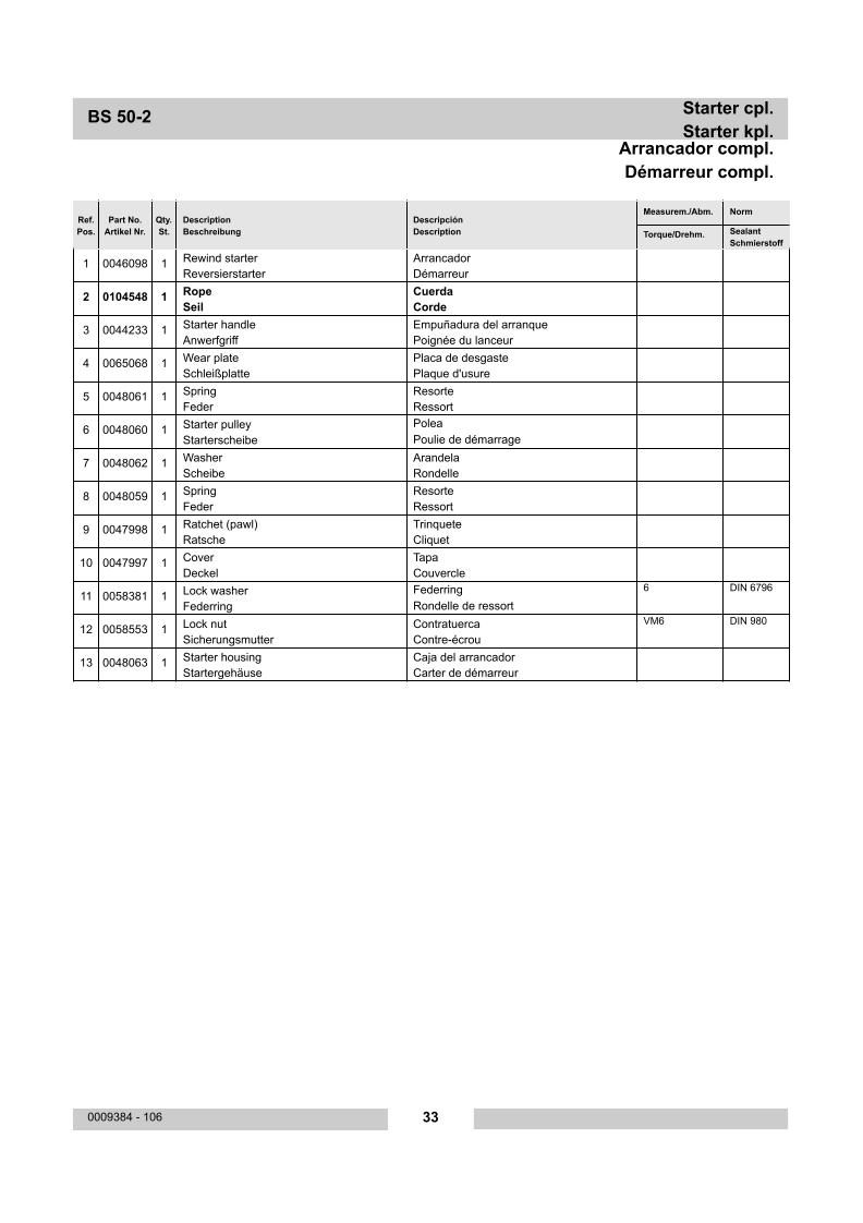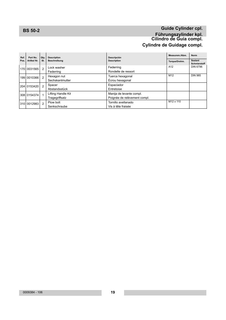 Vista explodida com todas as peças do compactador de solo BS50-2 do fabricante Wacker Neuson!
